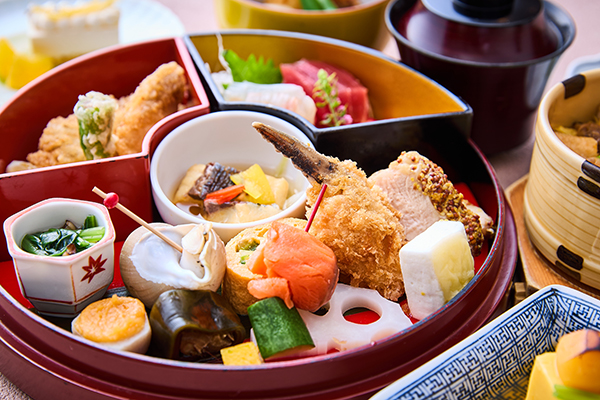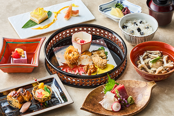 使用大量时令食材, 欢迎品尝注重五味五法且色彩华美的午餐御膳。 [主厨拿手菜/套餐/米饭/甜点]