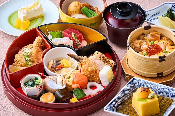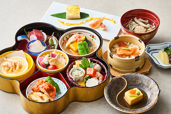 使用大量時令食材,歡迎品嚐這道注重五味五法且色彩華美的午餐御膳。 [主廚拿手菜/套餐/米飯/甜點]